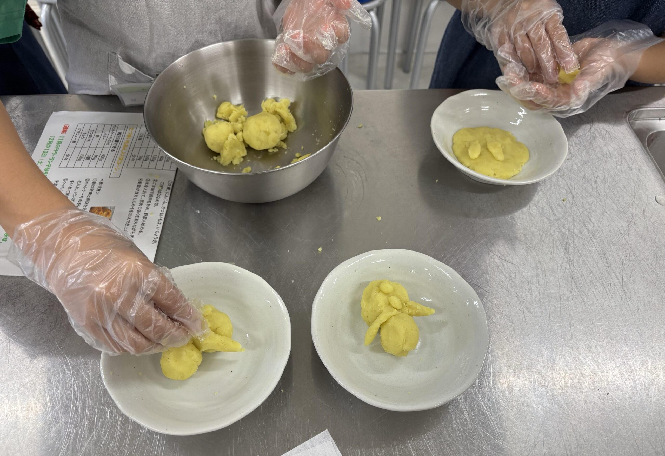 豚汁は丁寧に灰汁を取り、さつまいもスコーンは好きな形に整えていきます。子どもたちはみんな真剣な表情で集中していました。