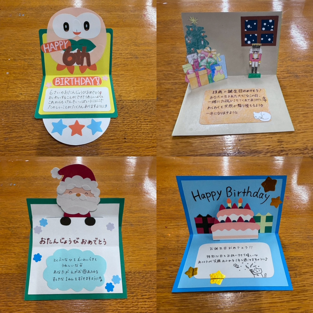 また、学生の皆さんが手作りしているという お誕生日カード も見せていただきました。